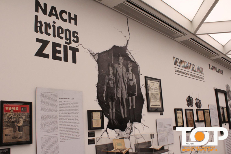 Außerhalb Aachens ging der Krieg weiter. Die Region erlebte die verlustreichen Schlachten der Ardennenoffensive und im Hürtgenwald und die verheerenden Luftangriffe auf Düren, Jülich und Heinsberg. Während das NS-System im übrigen Deutschland weiter bestand und funktionierte, erprobten die Amerikaner ihre Besatzungspolitik – Aachen wurde zum „Demokratielabor“. Im Resümee beleuchtet die Ausstellung den beginnenden Wiederaufbau in der Stadt und gibt einen Ausblick auf eine neue, europäische Ausrichtung Aachens bis hin zur ersten Karlspreisverleihung, aber auch auf die schleppende Aufarbeitung der NS-Diktatur. Innerhalb der chronologischen Ereignisse widmet sich die Ausstellung Themen wie der Rationierung von Konsumgütern, dem Leben in den Luftschutzbunkern und der Trümmerbeseitigung. Ein eigener Ausstellungsbereich stellt persönliche Geschichten der Aachenerinnen und Aachener in den Fokus.