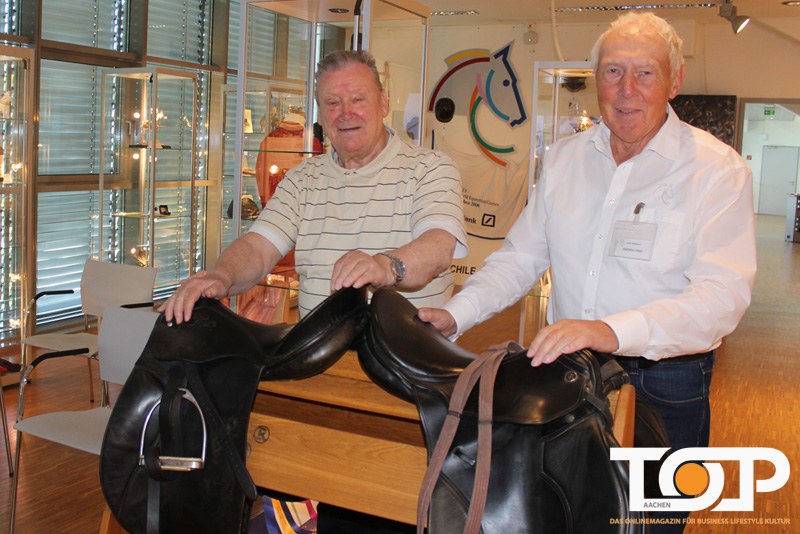 Die neuesten der 400 Exponate sind die Gastgeschenke vom Partnerland Frankreich, Erinnerungsstücke an die Garde Républicaine, das Kavallerie-Regiment der französichen Armee, sowie die staatliche Traditionsreitschule „Cadre Noir de Saumur“. Hans Mommer und Willi Held wissen über alles genau Bescheid, kennen die Daten, Sieger, Rekorde und die ganze Palette an „Ameröllcher“, die zum CHIO dazugehören. „Wir haben bereits unzählige Menschen aus aller Herren Länder geführt. Reisebusgruppen, Privatpersonen, Schulklassen, hochrangige Gäste, Prominente, Staatsoberhäupter und andere Persönlichkeiten waren darunter“, erzählt Museumsbetreuer Mommer. „Wir lernen hierviele Menschen kennen, denen wir sonst im Leben nie begegnen würden, zum Beispiel Kronprinzessin Mary aus Dänemark, die 2013 den CHIO Aachen besuchte“, erklärt Held. Das CHIO Museum ist am letzten Turnierwochenende noch während der sportlichen Wettbewerbe mit einer Führung zu besuchen. Anmeldungen am Haupteingang.