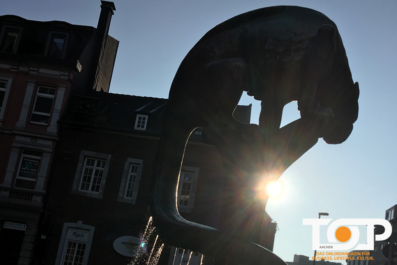 Foto © Stadt Aachen/Stefan Herrmann: Beliebt und berüchtigt: Der Bahkauv-Brunnen zwischen historischer Altstadt und Büchelquartier.