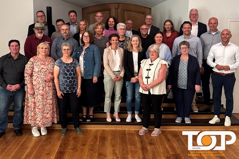 Foto © Kupferstadt Stolberg/Kerstin Meinhard: vordere Reihe v.l.: Haralampos Dimitrakakis, Petra Jansen, Iris Jansen, Heike Kluck, Lydia Merkelbach, Beigeordneter Michael Ramacher