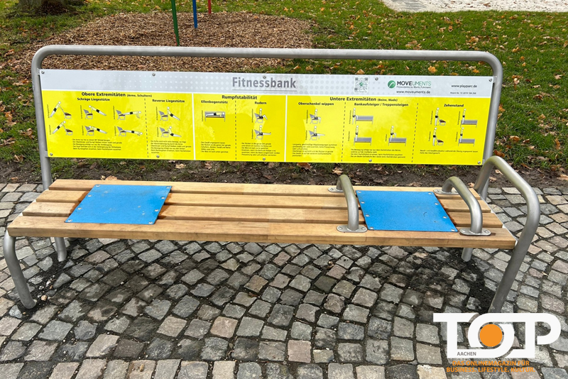Für die Meisten ist eine Bank erst einmal ein Ort, um zu rasten – nicht so die beiden neuen Fitnessbänke, die die Stadt erstmalig angeschafft und die kürzlich durch den Aachener Stadtbetrieb aufgestellt wurden: eine am Stauweiher Kupferbach und eine am Spielplatz Kaiser-Friedrich-Allee. Damit wird das öffentliche Bewegungsangebot in der Stadt Aachen erweitert. Die Fitnessbänke sind eine Maßnahme aus der kommunalen Sportentwicklungsplanung.