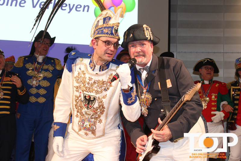 Gegen 19 Uhr begrüßte Sabine Verheyen den FestAusschuss Aachener Karneval mit dem Präsidenten Frank Prömpeler, den Verband der Karnevalsvereine Aachener Grenzlandkreise mit dem Präsidenten HaJo Bülles sowie die Närrische Europäische Gemeinschaft (NEG) mit Präsidentin Petra Müller. Die NEG feiert in diesem Jahr ihr 50-jähriges Bestehen und hat die Stadt Aachen zu Beginn des Jahres zur ersten närrischen europäischen Kulturstadt ernannt.
