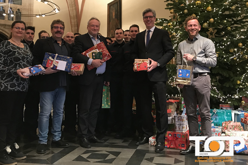 Vier Tage vor dem Fest übergab Philipp die Präsente an die Vertreter der beteiligten Einrichtungen Maria im Tann – Zentrum für Kinder-, Jugend- und Familienhilfe, Evangelische Kinder- und Jugendhilfe Aachen-Brand und Zentrum für soziale Arbeit Burtscheid.